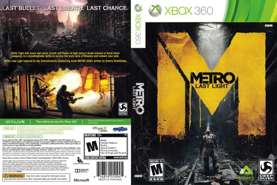 Metro: Last Light (2013) XBOX 360 NTSC retail cover